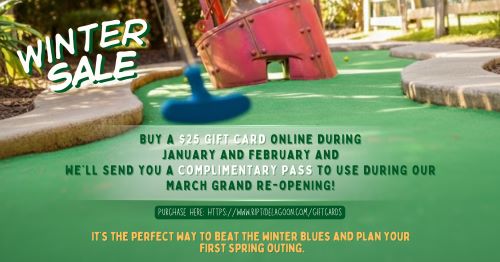 Buy a $25.00 Gift Card online during January and February and we'll send you a complimentary pass to use during our March Grand re-opening